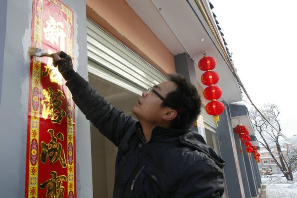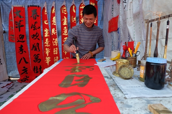 春聯是各家各戶過年的必備品,相比工業速成品,人們卻更加中意寓意濃厚的手寫春聯(德宏州芒市紀委 尨姬萱)