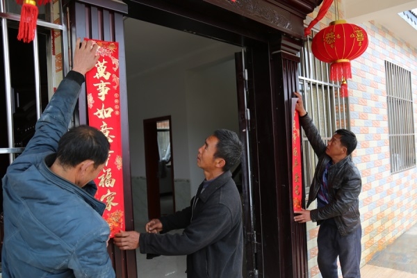 已脫貧摘帽的鄉親喜遷新居貼上春聯(曲靖市會澤縣紀委)