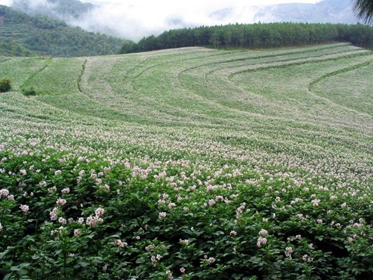 龍場鎮馬鈴薯種植基地的馬鈴薯花海正在迎接客人