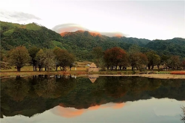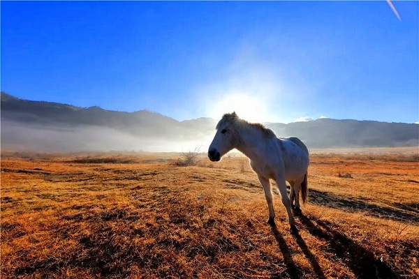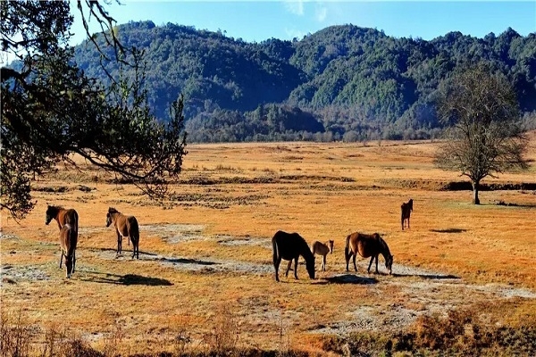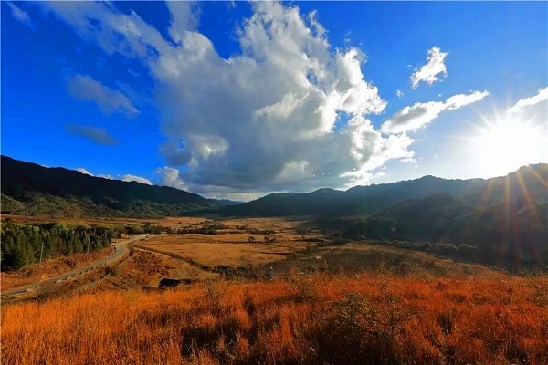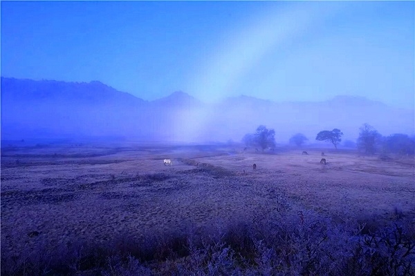 詩蜜瓦底——黃草壩位于盈江縣城以北43公里,壩中多草甸,牛馬成群,一條小河從中穿過,兩岸多百年奇樹,地勢緩和起伏,形成了美麗奇特的高山草原風光。