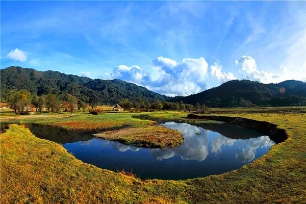 這里白云朵朵,朗朗晴空;這里草地廣闊,牛羊肥壯;這里黃草戚戚、參天古樹;小伙伴們約起來,讓我們一起到這片凈土,漫步草地,放空自己,盡享眼前美景!(盈江縣紀委 朗培相 鄭山河 )