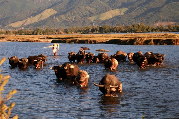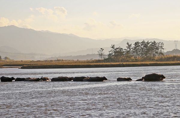 牛群江中一字排開,邁著整齊的步伐一頭緊跟著一頭,生怕掉了隊
