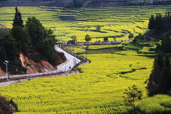 坐下來,陪一片油菜花享受時(shí)光的靜穆,晨間的油菜花讓夜霧添了些水氣,遠(yuǎn)看有一抹輕輕的煙嵐,近看一些露珠掛在油菜花萼下面,與油菜花相互映襯。傍晚時(shí)分,漸漸升溫的陽光仿佛給油菜花刷了一層漆,看上去金色更深,甚至有些地方呈現(xiàn)出一抹古銅色來。陽春三月,到博尚去,看金色的蘭花。(臨滄市紀(jì)委 杜群忠 張偉鋒)
