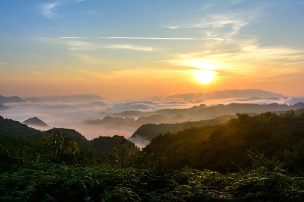 彩云初升,絢麗似火