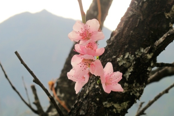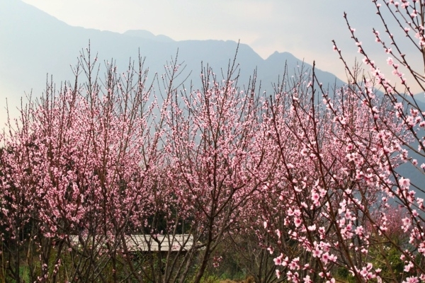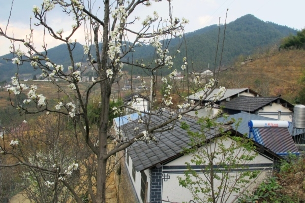 十多年后,當我們再次來到黃草嶺時,已是陽春三月,雖然當天天色陰沉,下著毛毛雨,但仍然使我感到黃草嶺“世外桃源”的無窮魅力。此時,正是春回大地,萬木復蘇的時節,雖然嶺上的桃花、梨花還沒有完全開放,但已經綻放的花朵足以使我們感受到春天的絢麗和黃草嶺的美麗。