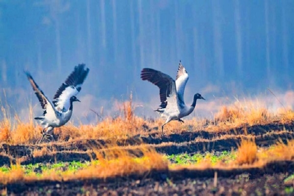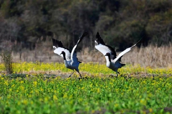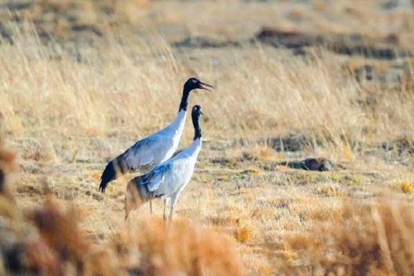 黑頸鶴棲息于海拔2500-5000米高原的沼澤地、湖泊及河灘地帶,是世界上唯一生長、繁殖在高原的鶴,也是飛過了珠穆朗瑪峰的鳥類,飛行高度可達10000米。( 盈江縣紀委 何海燕 何斌 寸智勇 )