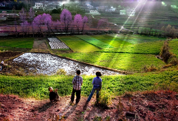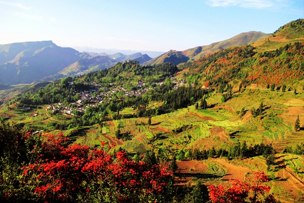 三月里的富源,東風(fēng)輕吹,霧靄散去,春意漸濃。和煦的陽(yáng)光灑在田間河畔、山巔枝頭。天空湛藍(lán)通透,花兒競(jìng)相綻放,大地披上了絢麗彩衣,萬(wàn)物迎來(lái)了勃勃生機(jī)。