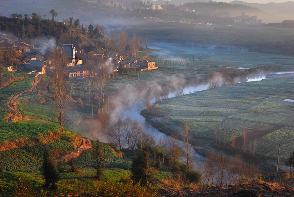 河曲薄霧書晨意