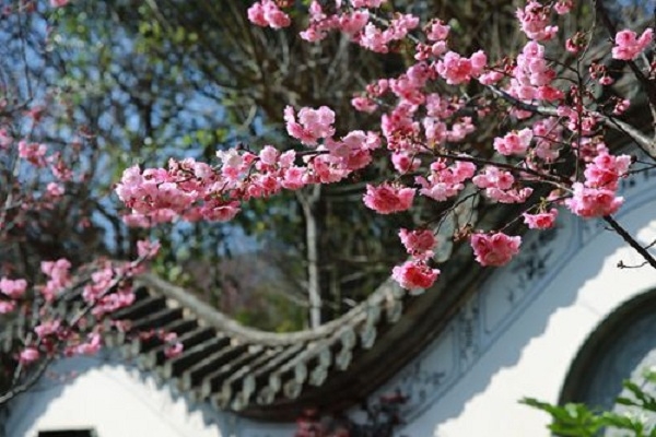 早春三月,空氣中有些冷冷的寒意,漫步公園,忽見白墻青瓦上,探出串串粉紅,走近一看,卻是一樹早開的櫻花,艷艷的色彩,讓人的思維憑空增添了一份春思和遐想。在春風的呼喚下,鹿城的櫻花、海棠、桃花、梨花、玉蘭花、油菜花競相開放,千姿百態。