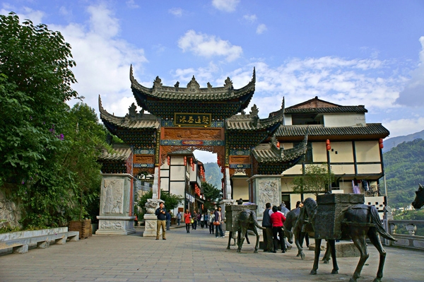 關口的牌坊上撰寫著這樣一副對聯:“汲古融今,立派開宗,雅韻僰文朱提水;經秦歷漢,鎖滇扼蜀,長歌古道豆沙關”。