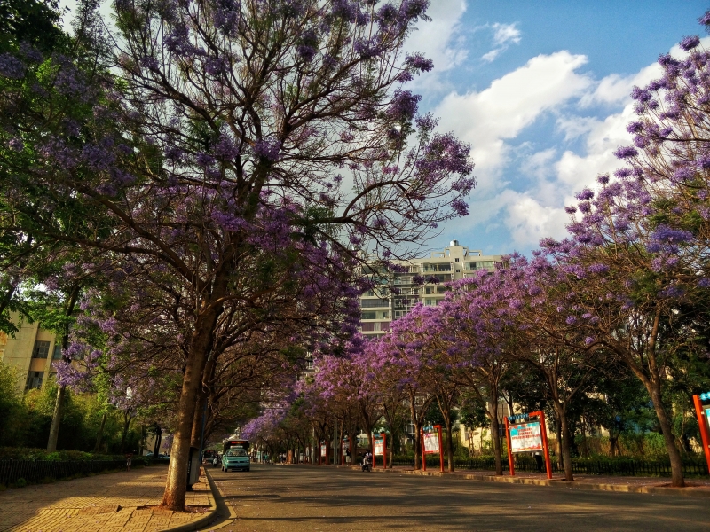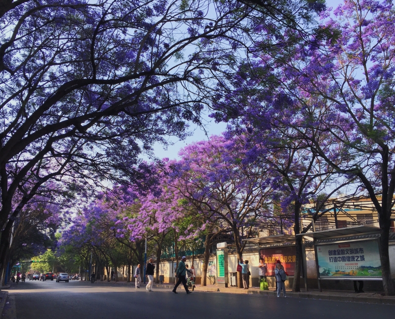 五月,藍花楹又靜悄悄地覆蓋城市的某些角落,給春城裝扮上紫藍色的盛裝。她在昆明落戶近30年的時間里,每年總是如約綻放,當一場藍花雨落下,清悠、寧靜、深遠,甚至帶一點點清麗脫俗。行走于花海之下,樹影婆娑,花枝搖曳,令人心曠神怡。