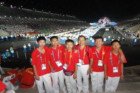 和學生參加在希臘舉行的十二屆世界特奧會(右三)