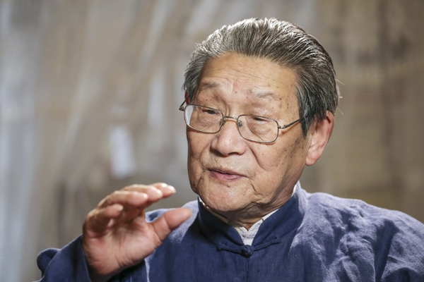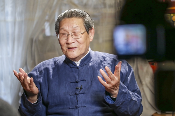 年逾八旬的樓老,身著藏藍色的中式對襟上裝,神情淡然,親切隨和,行誼盡是儒家風范,言談盡顯哲人智慧。