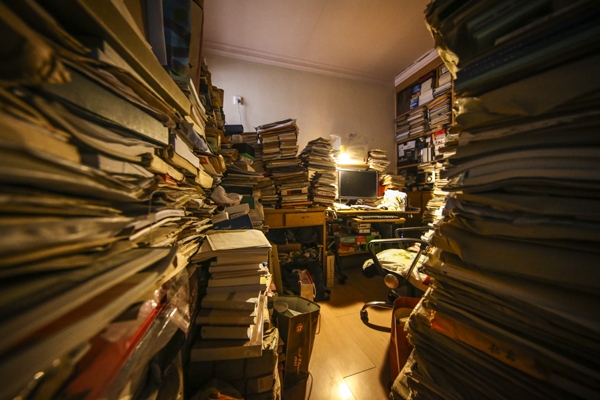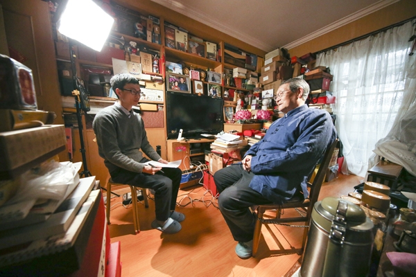 初春的北京,寒冬未去,暖意已來,樓老家中的水仙正吐芬芳。他的家并不大,卻書香滿溢。即便不甚寬敞的客廳,四周也壘滿了各式的書籍。書架上,還擺放著不少和夫人、孩子的合影,不難看出他對家的眷戀。