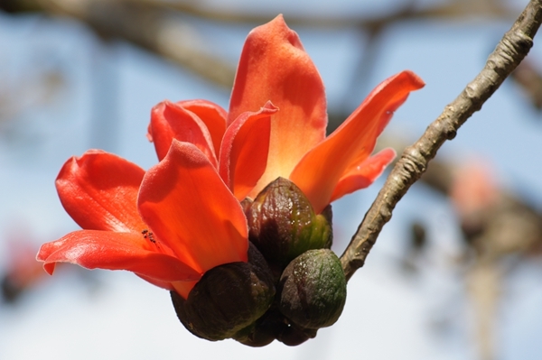 三月的怒江沿岸,一朵朵一簇簇綻放的紅木棉,像一團團熊熊的火在燃燒,或傲然獨立于山脊,或三兩相依于路旁,或好似邀約地矗立于江畔,點綴出一種別樣的美。