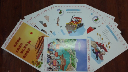 據悉,省委省直工委、紀工委在深刻理解《關于新形勢下黨內政治生活的若干準則》《中國共產黨黨內監(jiān)督條例》《中國共產黨問責條例》三部黨內法規(guī)出臺的背景、意義、特點和精神實質的基礎上,從中挑選出11個部分內容,繪制成長53厘米、寬39厘米漫畫11幅。作品通過運用正反對比的展現手法,頌揚了廉潔文化、諷刺了腐敗現象,發(fā)揮廉政文化藝術作品的教育作用,讓人們從觀賞品鑒中得到啟迪。通過這些直觀、生動的漫畫作品教育并激勵黨員領導干部追求理想信念高標準、不碰紀律底線。