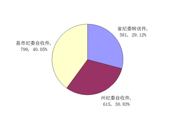 2017年,全州紀檢監察機關共接受信訪舉報1995件,與2016年同期2077件相比降3.95%。其中,省紀委轉送581件,占總量的29.12%;州紀委自收615件,占總量的30.83%;縣市紀委自收799件,占總量的40.05%。