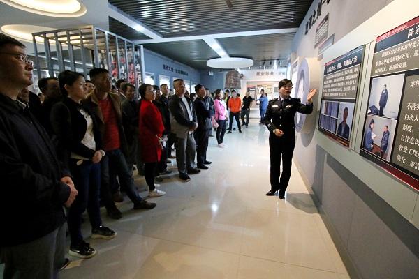華坪縣組織黨員干部到看守所開展警示教育活動,讓黨員干部真切體會到高墻、鐵窗與現實的反差,從而引以為戒,切實增強防腐拒變的自覺性。(沈全芳 攝)
