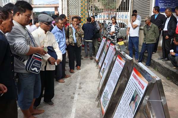 元江縣將全縣查處的扶貧領域各種案例制作成圖文并茂、通俗易懂的展板,教育廣大黨員干部要牢固樹立廉政意識,筑牢思想防線。(董家飛 攝)