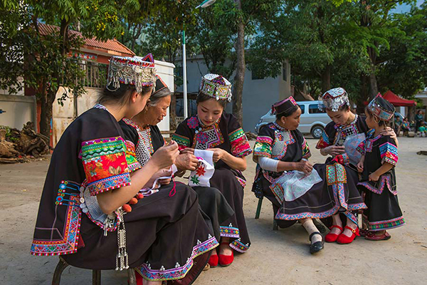 心靈手巧的傣家女子圍在一起刺繡,她們用勤勞的用雙手描繪著美好的明天。