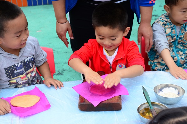 中秋佳節來臨,麗江新苗幼兒園舉辦中秋活動,小朋友們參與其中,親手制作傳統納西月餅,感受民族文化,與傳統手藝對話。(趙慶祖 攝)