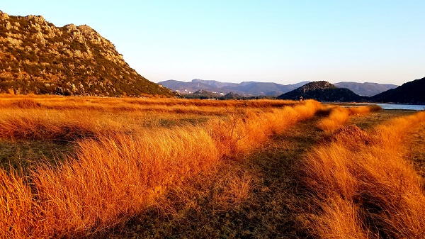 深秋時節(jié),被晚霜染紅的蘆草猶如燃燒的火焰,為秋日增添了一筆濃重的色彩。(楊躍 攝)