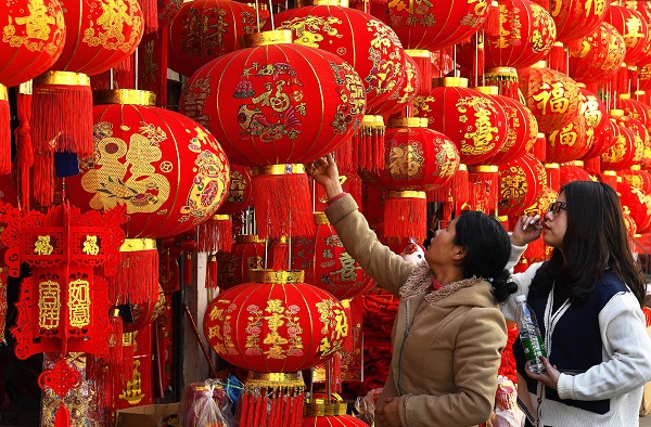 新年新氣象,母女兩人一起精挑細(xì)選購買吉祥物,希望在新的一年里事事順心、吉祥如意。(黃存義 攝)