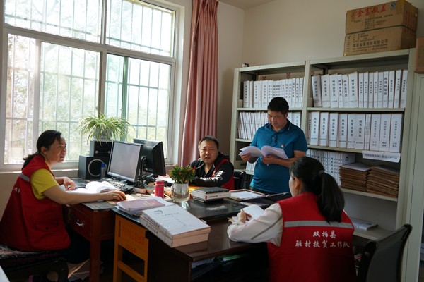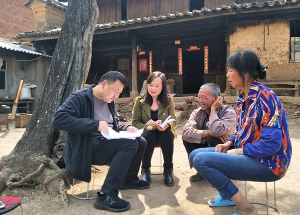 紀(jì)檢監(jiān)察干部在進(jìn)村入戶、深入田間地頭了解相關(guān)情況后與駐村扶貧工作隊員核實情況。