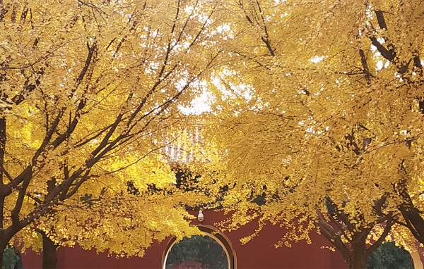 銀杏經(jīng)過寒冬的洗禮,變得愈發(fā)金黃,如一片暖陽撒在紅墻青瓦上,讓冬日變得亮麗。(張相昆 攝)