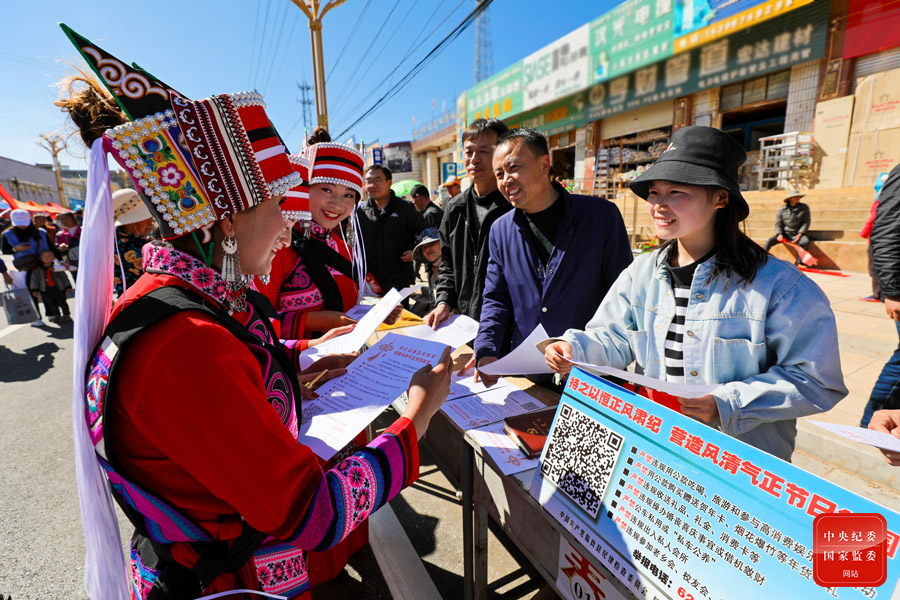 云南省曲靖市陸良縣紀委監委組織紀檢監察干部深入鄉鎮(街道)、村居(社區),通過發放宣傳單、現場講解等方式,向廣大群眾宣傳“四風”問題監督舉報方式,發動群眾參與監督。(云南省曲靖市陸良縣紀委監委 供 王勇 攝)