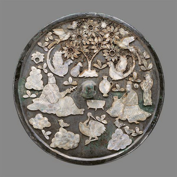 高士宴樂紋嵌螺鈿銅鏡 唐代