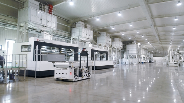 寧夏銀川,世界首個萬噸級鑄造3D打印智能工廠的車間內,數臺5米多高的白色鑄造用砂芯3D打印機在智能流水線上有序工作。這些設備,全部為企業自主研發。