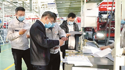 一汽解放汽車有限公司紀檢工作部圍繞物資管理領域廉潔風險開展“下沉式”監督,提出廉潔風險點識別和防控建議。圖為該部工作人員在卡車廠總裝車間走訪了解相關情況。(一汽解放汽車有限公司 供圖)