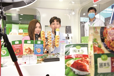今年11月上旬,第三屆中國國際進(jìn)口博覽會在上海舉辦。本屆進(jìn)博會累計(jì)意向成交726.2億美元,比上屆增長2.1%。圖為11月6日,來自韓國一家企業(yè)在進(jìn)博會上進(jìn)行線上產(chǎn)品直播展示。(圖片來源:視覺中國)