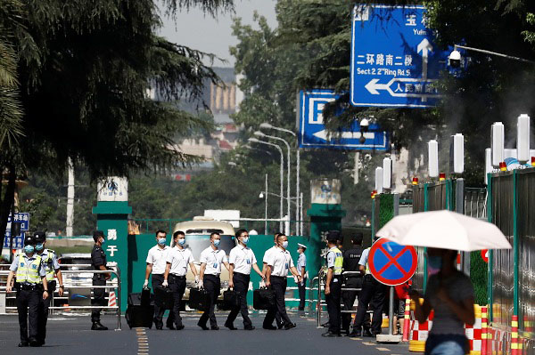 2020年7月27日,四川成都,按照中方要求,美國駐成都總領(lǐng)館閉館。中方主管部門隨后從正門進(jìn)入,實行接管。(圖片來源:視覺中國)