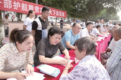 2020年7月23日,重慶市永川區(qū)紀(jì)委監(jiān)委組織開展“永川區(qū)紀(jì)檢監(jiān)察干部護(hù)航脫貧攻堅大下訪活動”。圖為參與接訪的工作人員在勝利路街道萬壽社區(qū),現(xiàn)場接受群眾舉報投訴,解答群眾政策咨詢。(圖片來源:視覺中國)