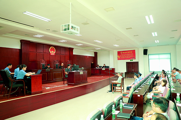 圖為曾凡軍單位受賄、受賄案一審?fù)彫F(xiàn)場。(臨武縣紀(jì)委監(jiān)委供圖)