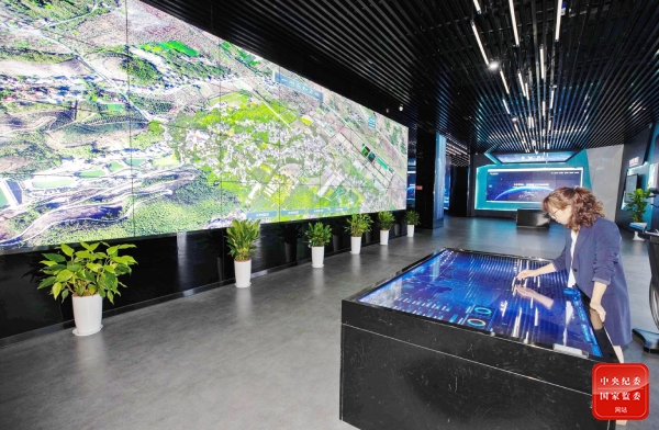 江蘇省淮安市洪澤區打造集辦公智能運行、在線自助服務、申請自助體驗等為一體的行政審批服務智慧平臺,全方位提升群眾辦事咨詢便捷度和獲得感。圖為行政審批服務大廳終端大屏實時更新智能運行情況,接受群眾監督,辦事群眾在自主體驗區在線操作申請事項。(江蘇省淮安市洪澤區紀委監委供 高凌云 攝)