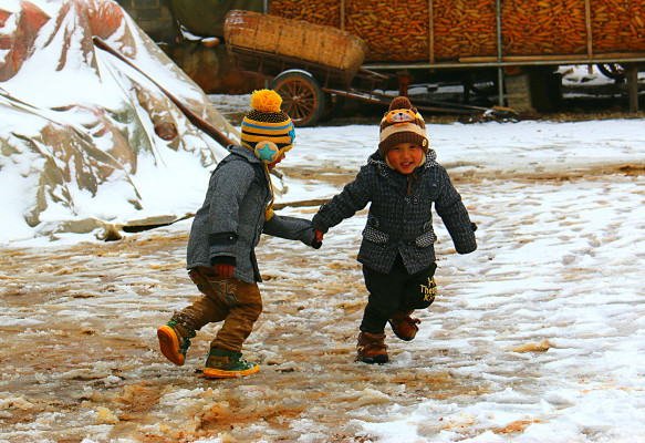 俗話說:“小孩小孩你別饞,過了臘八就是年。”孩子們忙著在雪地里肆意撒歡、盡享冰雪樂趣,歡天喜地迎接新春佳節的到來。(廖吉安 攝)