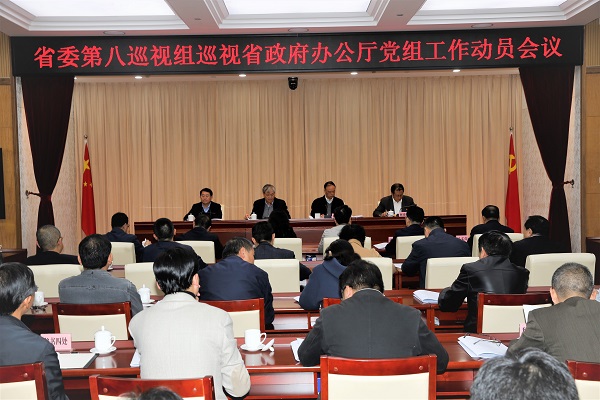 按照省委統一部署,11月24日,省委第八巡視組巡視省政府辦公廳黨組工作動員會召開。會前,省委第八巡視組組長孟端平主持召開與省政府辦公廳黨組書記楊杰,黨組副書記、辦公廳主任孫燦的見面溝通會,傳達了省委常委會聽取十屆省委第十一輪巡視情況匯報時的會議精神;通報了有關工作安排。會上,孟端平作了動員講話,對做好巡視工作提出要求;楊杰主持會議并表態講話。
