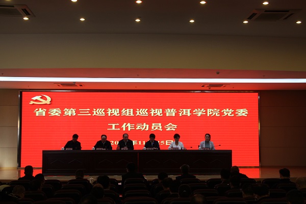 按照省委統一部署,11月25日,省委第三巡視組巡視普洱學院黨委工作動員會召開。會前,省委第三巡視組組長程猛主持召開與普洱學院黨委書記陸平,黨委副書記、院長成文章的見面溝通會,傳達了省委常委會聽取十屆省委第十一輪巡視情況匯報時的會議精神;通報了有關工作安排。會上,程猛作了動員講話,對做好巡視工作提出要求;陸平主持會議并表態講話。