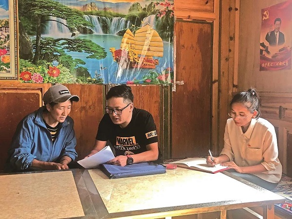 德欽縣奔子欄鎮紀檢監察干部深入群眾家中了解和核對有關幫扶資金到位情況。(迪慶州紀委監委 鄭斌/攝)