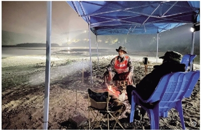 圖①:云南瑞麗,封控人員深夜值守在中緬界河瑞麗江的河灘上。