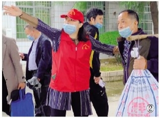 圖②:江西新干縣火車站,志愿者正在為旅客提供上車服務。