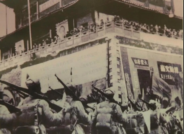 解放大軍經過昆明近日樓