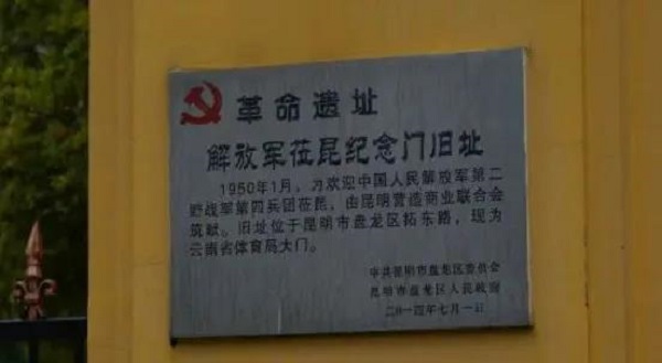 解放軍蒞昆紀念門舊址(現為云南省體育局大門)
