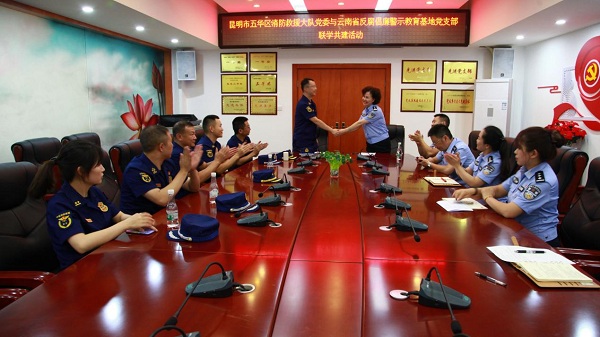 為深入推進黨史學習教育,鞏固深化“不忘初心,牢記使命”主題教育成果,提高黨組織的凝聚力、創造力和戰斗力,6月25日,云南省反腐倡廉警示教育基地黨支部與五華消防大隊黨支部開展聯學共建活動。
