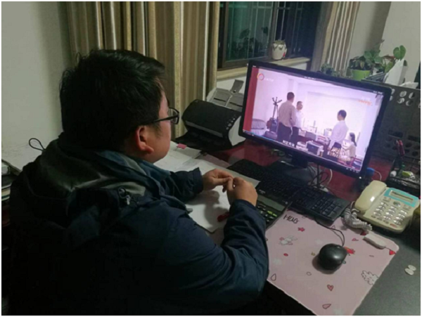 怒江州民政局職工通過網絡直播觀看《清流毒——云南在行動》第一集。