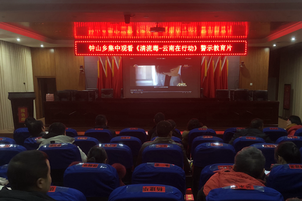 羅平縣鐘山鄉組織50余名黨員干部同步集中觀看反腐警示專題片《清流毒——云南在行動》第一集,并展開學習討論。(李承佼 攝)