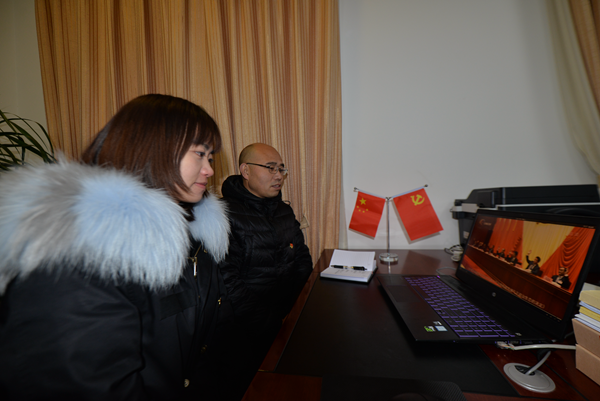 曲靖市紀委監委宣傳部干部在辦公室收看專題片,干部們討論交流著各自的感想。(徐天德 攝)
